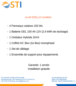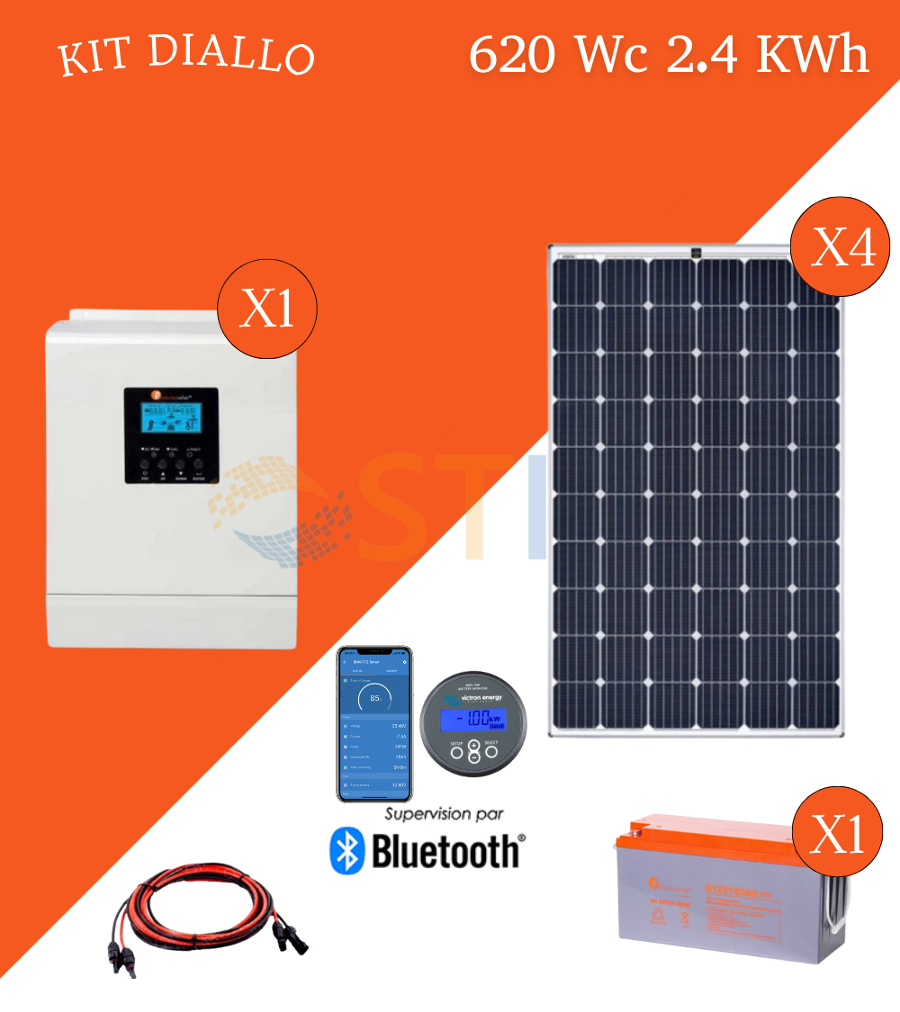 - 1 Batterie GEL 150 Ah 12V (2.4 KWh de stockage)